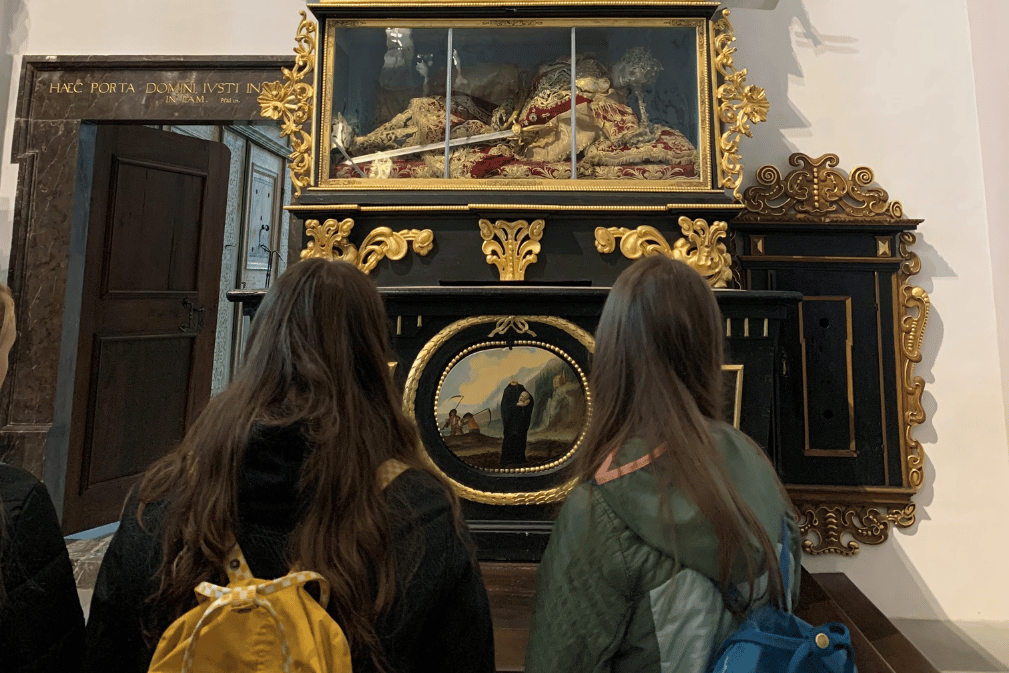 Ob Pfarrer wohl noch in Fitnessstudio gehen müssen, wenn sie mit der Monstranz schon einiges an Gewicht heben? Die Schüler und Schülerinnen haben es ausprobiert…
