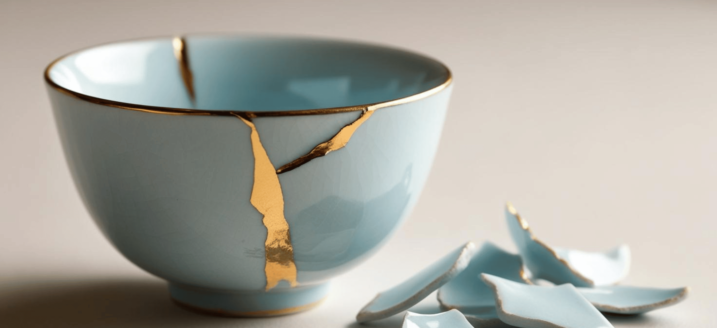 Manchmal geht in unserem Leben etwas zu Bruch. Ganz wortwörtlich. Während wir in unserem Kulturkreis die Scherben meist schnell entsorgen, geht die japanische Kunst des Kintsugi anders mit Zerbrochenem um: Die Scherben werden mit Gold repariert. Anstatt die Risse zu verstecken, werden sie hervorgehoben und machen das Objekt einzigartig und wertvoller als zuvor.