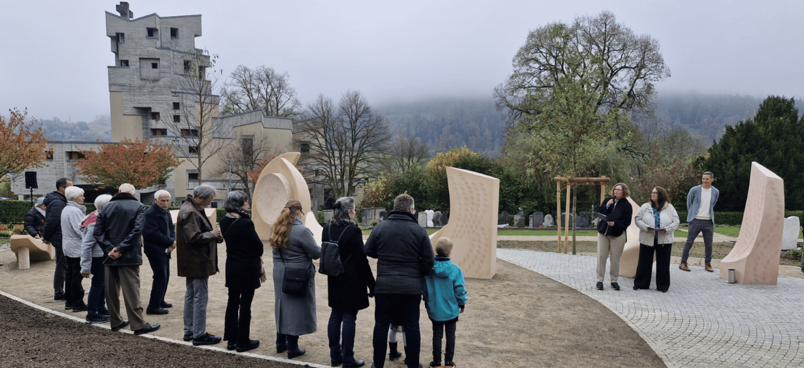 Die Einweihung des Gemeinschafts- und Sternenkindergrabes sowie eines dazugehörigen Begegnungsplatzes begann mit dem musikalischen Auftakt der Musikgesellschaft Harmonie und einer Ansprache des Stadtpräsidenten Mathias Müller. Im Anschluss gaben Landschaftsarchitekt