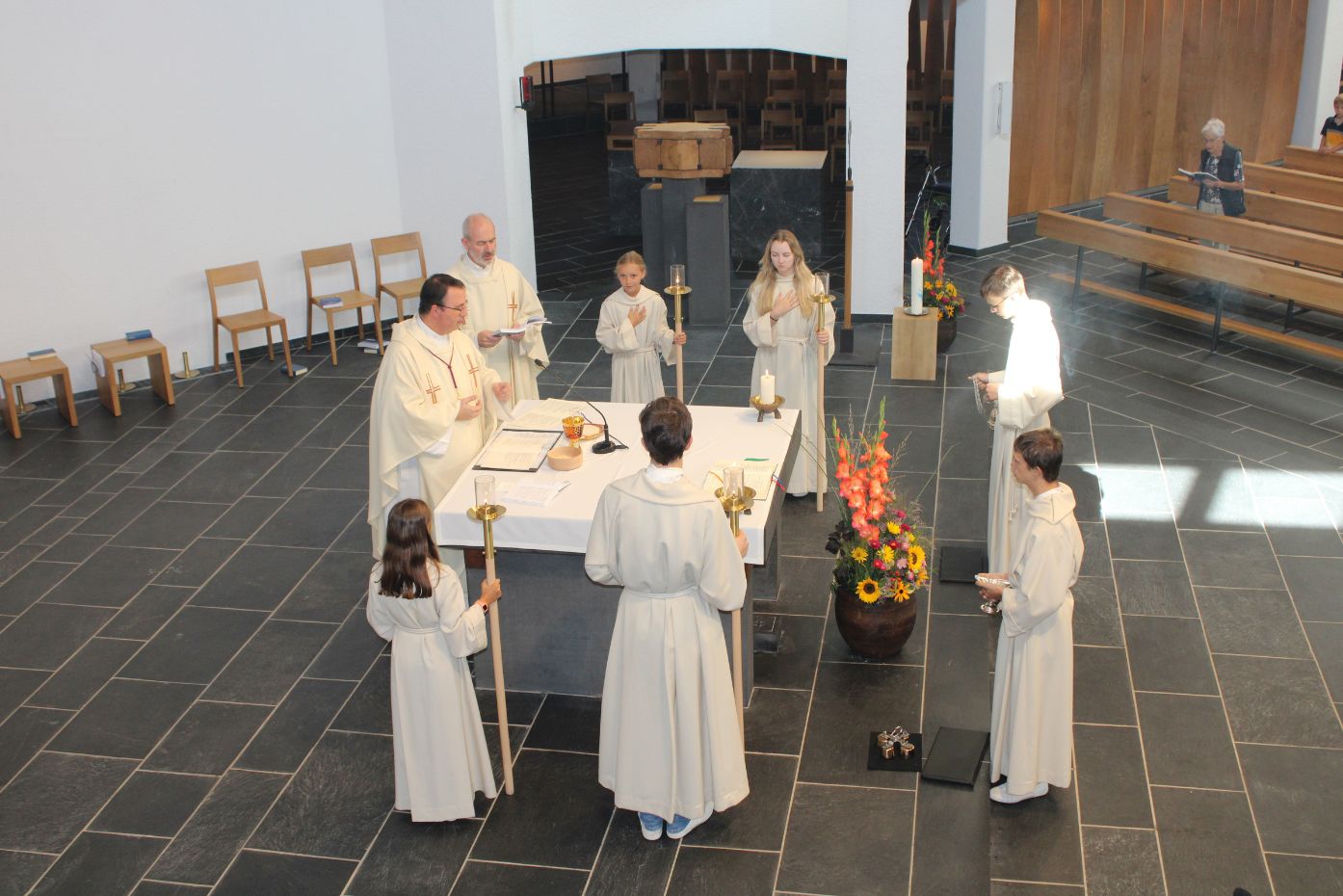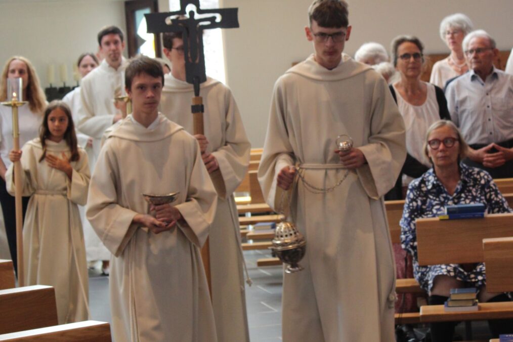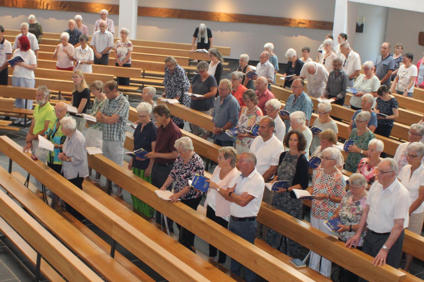 Am Sonntag, 1. September trafen sich Angehörige aus allen Pfarreien zum Seelsorgeeinheitsfest in Wattwil. Der feierliche Gottesdienst, der vom Pastoralteam gestaltet wurde, wurde vom Bäuerinnenchörli Heiterswil umrahmt. Wie die Namenspatrone der Wattwiler Kirche, Felix und Regula, gehörte auch die heilige Verena zur sogenannten Thebäischen Legion. Da ihr Namenstag am 1. September gefeiert wird, wurde ihr Leben und Wirken im Gottesdienst vorgestellt. Auf Bildern und Statuen wird die heilige Verena oft mit einem Kamm oder einem Krug dargestellt. Vertreterinnen und Vertreter aus den einzelnen Pfarreien brachten Wasser aus ihrem Wohnort in einem Krug mit und gossen es in einer Schale zusammen als Zeichen des Teilens von Liebe, Rücksicht, Freude, Geduld, Vergebung, Treue und Fülle. Eine Fülle von Sonne, feinen Speisen, Getränken und Begegnungen durfte beim anschliessenden Apéro genossen werden, musikalisch umrahmt vom Trio Jungblut.